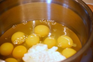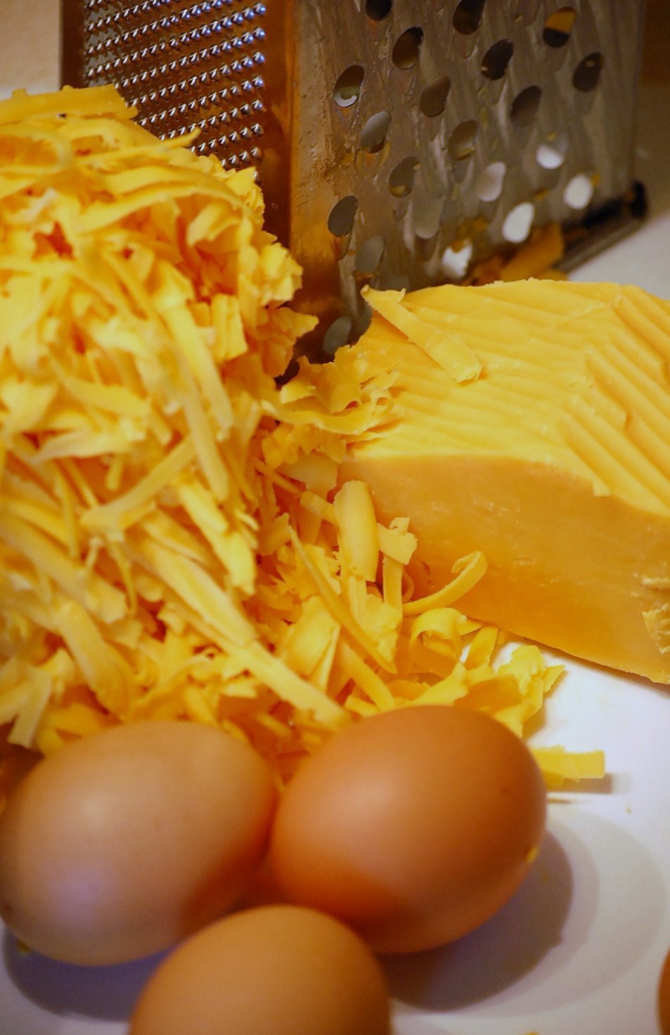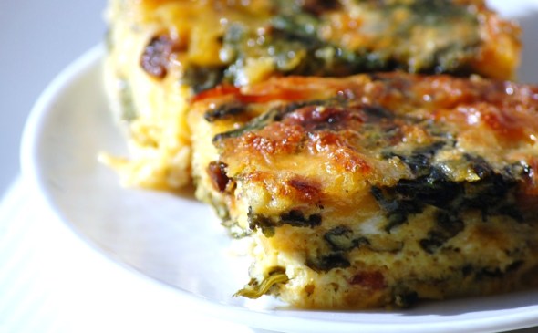 The sunny-ness of eggs and cheese help lift moods on gloomy winter mornings but even better, in spring, when the spinach shows up, proud and tender, you can also enjoy this. I’ve found that amounts are somewhat flexible, I’ve added more greens than called for, used swiss chard or kale, and swapped the cheddar with Colby jack, mozzarella, or whatever needed to be used up.