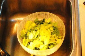 4. Wash and tear romaine into bite-size pieces.