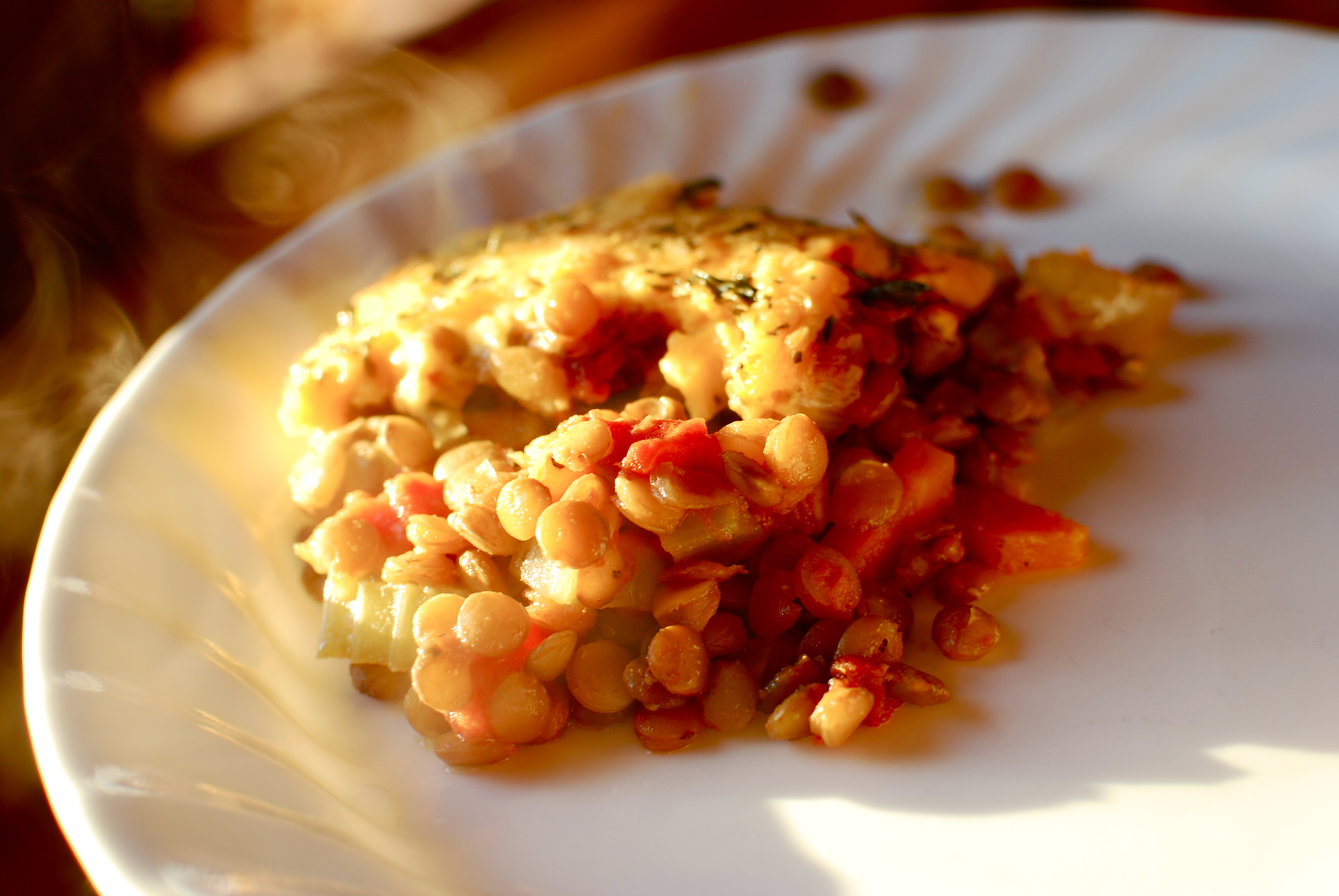 We were blessed to grow up in a home where my mom defied the additive-laden and trendy boundaries of the Standard American Diet. Instead of white sandwich bread utterly devoid of life,we ate homemade, whole wheat bread. Unlike other children who we thought were lucky enough to score proper sweets, like Snickers or Twinkies, we ate Whole Wheat Crazy Cake or a simple fruit crisp. While other families ate all-white pasta dishes moistened with msg-spiked canned cream soups, we ate our Baked Lentils with Cheese. Although not all my mother’s creations were welcomed–for some reason, for years, her pancakes were always blackened—these humble lentils excited us, a wonderful sight at lunchtime after spending the morning hashing through math problems. Lentils cook up quickly and are high in fiber, iron, thiamine, phosphorus, and manganese as well as being low in cost. Their nutritional content is enhanced by a 7 hour soaking. Along with the cheese, the lentils form a complete protein. You’ll never miss the meat!