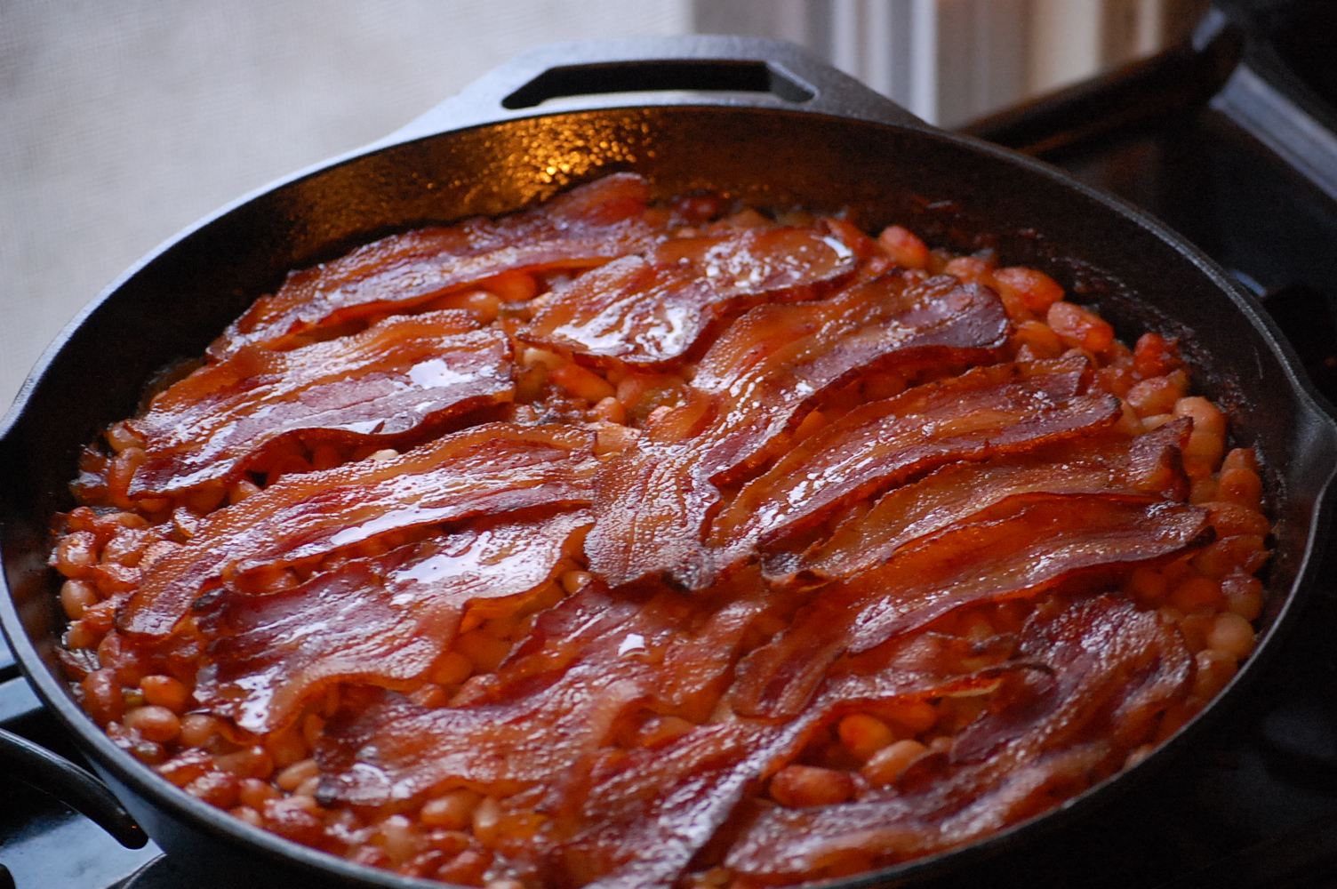 The beans should be bubbling and the bacon browned, crusty, and luscious!