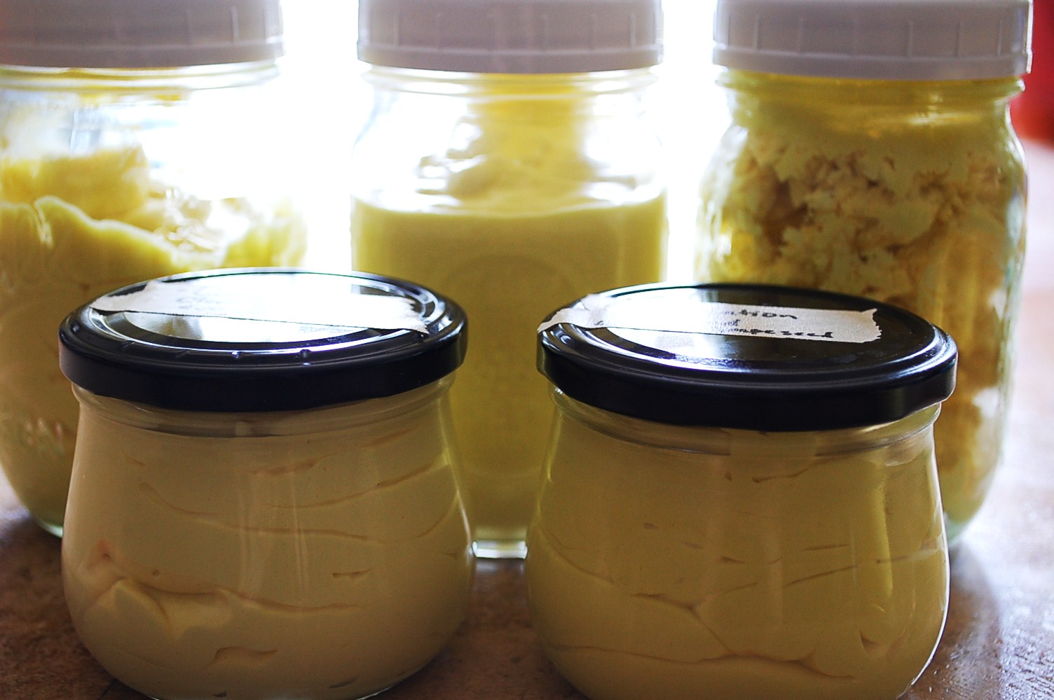 I played around with the recipe, trying different “carrier”oils combined with the solid oil. My solid oil was a 32 oz. tub of raw African shea butter. You could use cocoa butter etc. “Carrier” oils are oils such as grape seed, olive, coconut, almond, apricot and avocado. So far Paul has been happy with his “Relaxation Blend” scented version and has been swiping fingerfuls for his morning moisturization. My one worry was that with such undiluted fats/oils his “business casual” work clothes would become grease-stained if he didn’t rub the body butter in very well. So far, everything looks great, especially his skin!