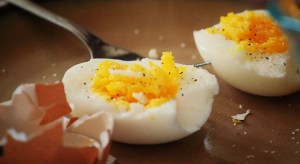 “Softer” boiled eggs, sprinkled with salt and pepper