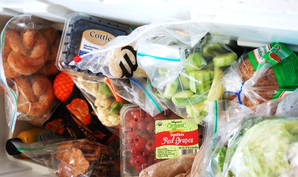 Once on the road, in a rather cramped mid-size rental, I’d sandwich together slices of meat, cheese, lettuce, and mustard over a stack of paper towels across my knees. This took patience to make a “meal” neatly that fed a hungry man and two disastrous toddlers before feeding myself– but definitely helped some of the seemingly endless road time pass more quickly. For the children, I’d just keep handing back a steady stream of crunchy veggies or berries. They ate incredibly well, they were delighted with the idea of a picnic in the car. We ate variations of meat and cheese, pb&j, mounds of fruit and veggies, and snacks. This fed us wonderfully for around 3 days of travel.