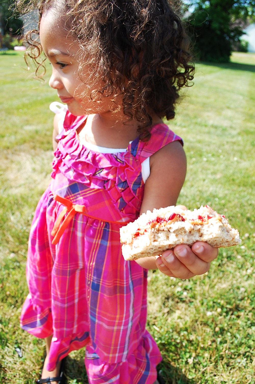 Vacationing for us is just doing nothing. Nothing but eating, sleeping more than usual, and enjoying our little ones. We planned a road trip to an Indiana wedding right along with a trip to my grandparents in South Carolina to visit and recharge our depleted batteries. We’ve also been attempting to follow a serious budget so we knew we’d have to plan accordingly. That meant we’d be packing some of our own meals. This did not mean that we’d be eating less deliciously or less nutritious. Ok, a little less nutritious than our typical menu! A few days before we left I began food preparations by making some whole wheat pretzels, cheddar wheat crackers, and I hard-boiled some eggs. The night before we jam-packed a large cooler with picnic foods. Here is the run-through: