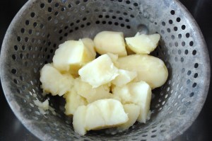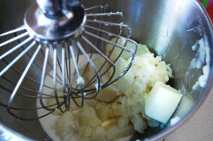 2. If you do have leftover mashed potatoes skip to step 3. Otherwise, peel and boil potatoes in salted water until completely tender. Mash with 1/2 cup milk and 3-4 Tbsp. butter. Check for salt, add more if it can’t stand alone as flavorful mashed potatoes. Set aside.