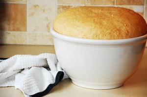 4. After kneading, place the dough into a greased bowl, cover with a dishtowel and allow to rise until doubled, about 30 minutes.