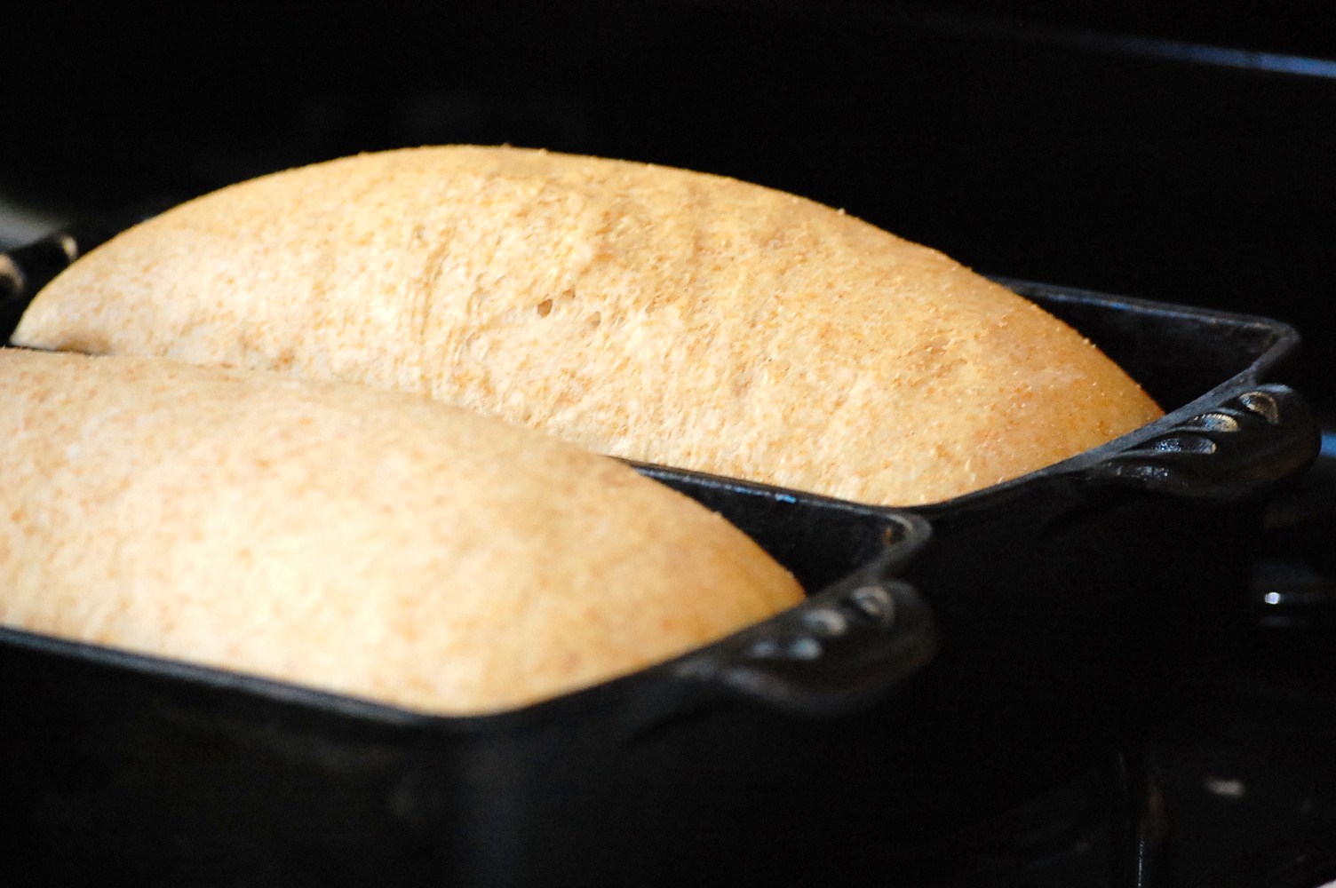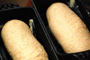 6. Bake loaves 30 minutes, or until browned and the loaves sound hollow when tapped on the bottom.