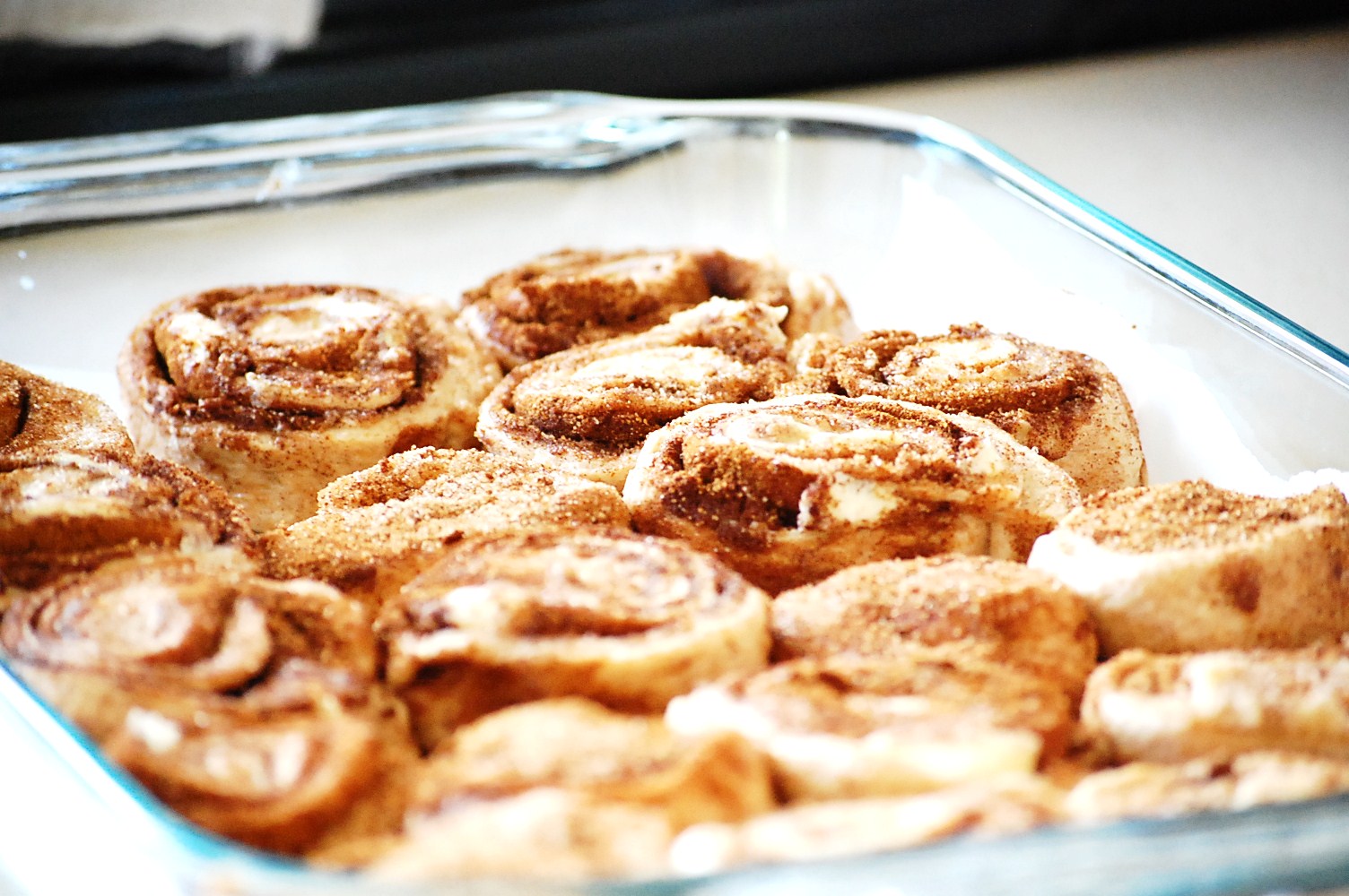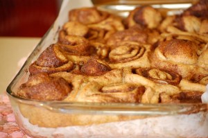 Note for Step 5: Sometimes I only make two loaves and use a rolling pin to roll the third section of dough into cinnamon rolls. I use 1/2-1 cup sucanat/sugar, 2-3 tbs. cinnamon, and 1/2 cup soft butter and smear the mixture over the dough. Roll up length-wise. Slice with a sharp knife and place into well-greased (or even better, lined with parchment paper) pan with sides. (this is to avoid a smoking oven from dripping sugar, a shrill smoke detector, and babies woken abruptly from naps!) Allow 30 minutes rise time, bake 25-30 minutes or until lightly browned. I like to freeze most of them individually for Paul have available for a quick breakfast. He simply reheats them once at work and I get to feel good that he hasn’t been forced to grab a cafeteria danish because I was too lazy to get out of bed early enough!