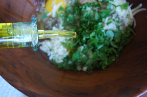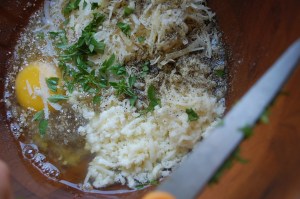 3. Squeeze all excess moisture out of the zucchini and mix with the other crust ingredients.