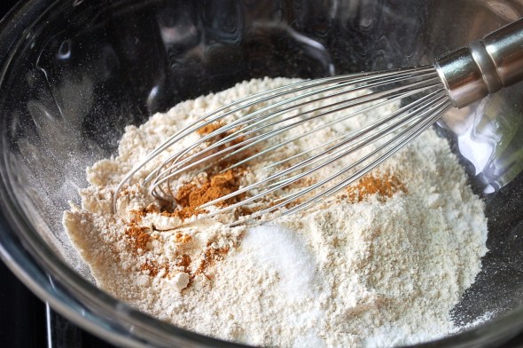 1. Whisk sifted flour, baking powder, baking soda, salt, and cinnamon in a large bowl.