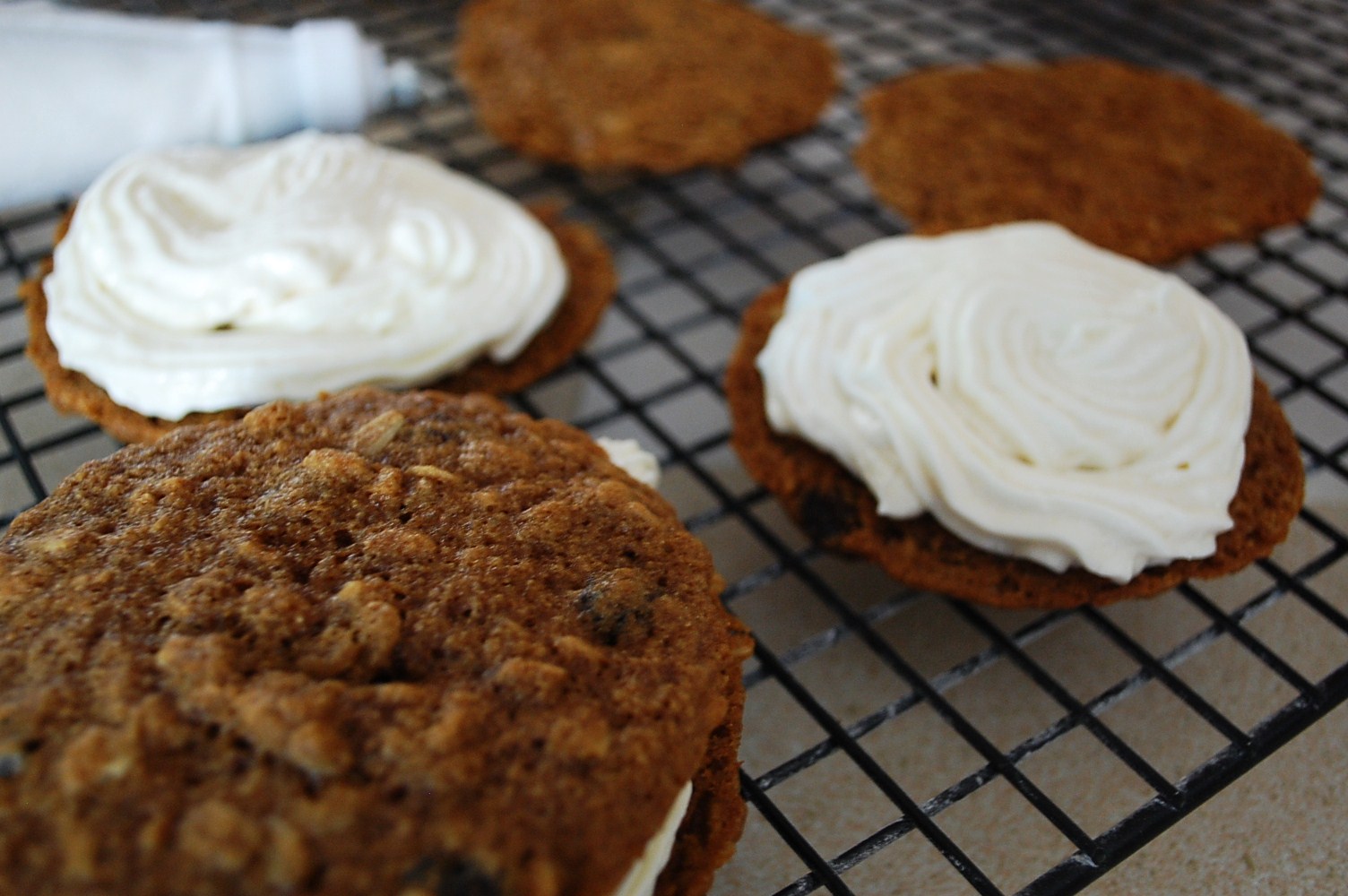 2. Frost one cookie bottom and then top with a second cookie. Keep cool. Feel free to use either a spatula, knife, or a pastry bag for this step.