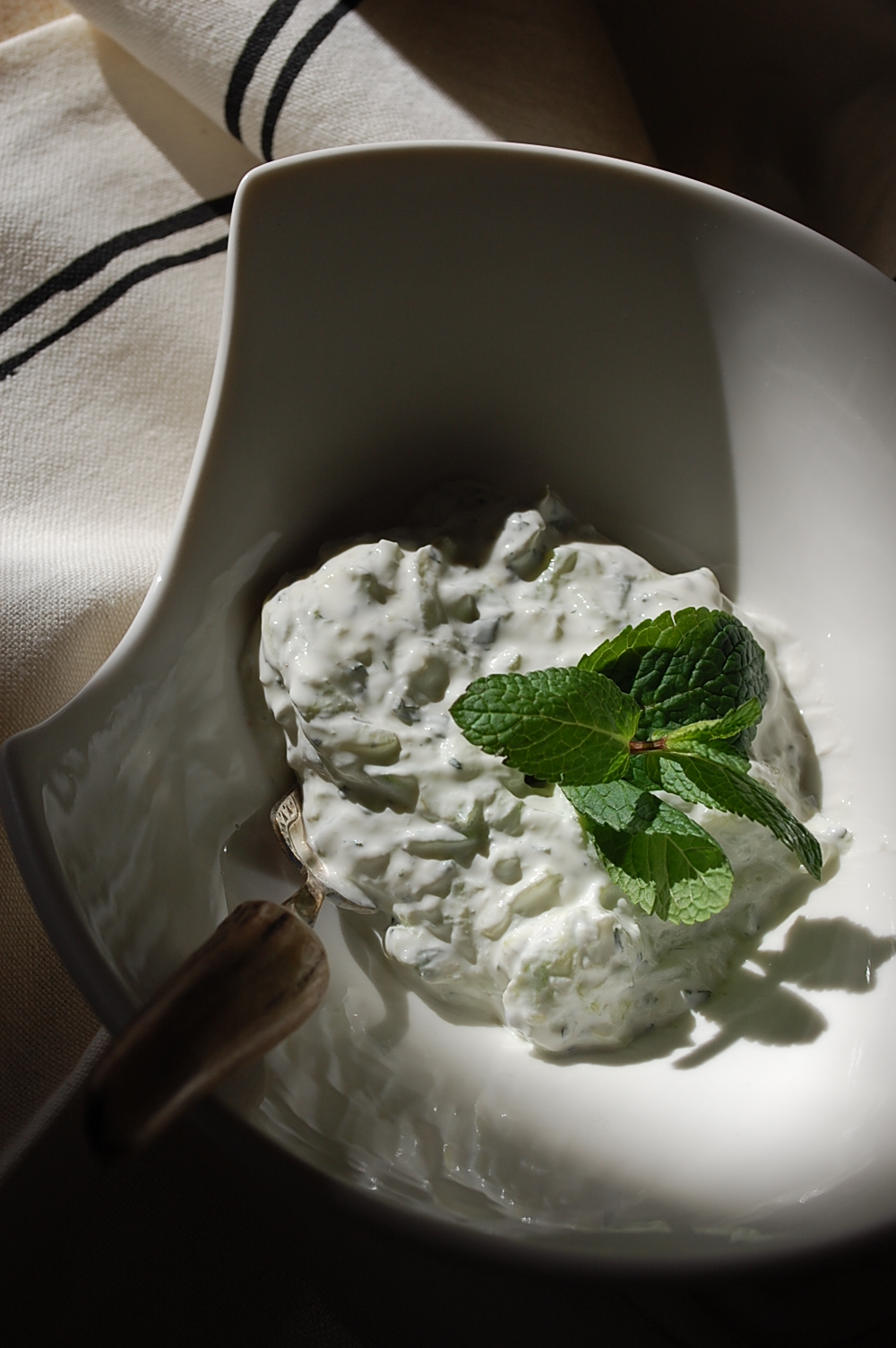 Here is my version of the classic Greek/Turkish meze, tzatziki. Traditionally, this would be served as a sauce for gyros or souvlaki, or with pita bread for dipping. I love it by itself or over salads or as a salad accompaniment. The flavors are clean, and in spite of the dairy creaminess, refreshing. Of all the versions I’ve experimented with, this is my favorite. The salting technique adds a level of finesse to such a simple salad because you can completely avoid the inevitable weeping cucumber juice and any residual bitterness. Also, you can make it a few hours ahead of time, and because it’s well-drained, by the time you serve it, it should still be thick and flavorful! Ideally you would use organic cucumbers which will be far richer sources of benefits (vitamins A and C as well as, potassium, manganese, folate, dietary fiber, magnesium and the important mineral silica) than conventionally raised cucumbers. If conventional cucumbers are what you have available be sure to wash and peel the skin to reduce amounts of pesticides and wax in your diet! So combine the crisped cucumber strands with the incredible fat from organic cultured dairy and you will have a dish both ridiculously delicious and powerfully healthy!