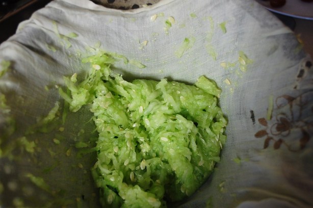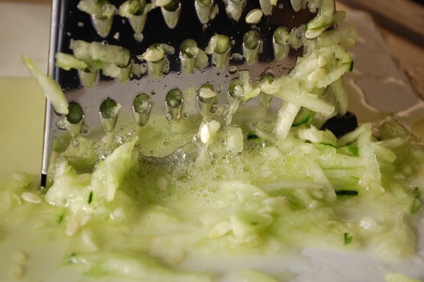 1. Peel cucumber if necessary. De-seed if desired. Grate and transfer to cloth-lined colander.