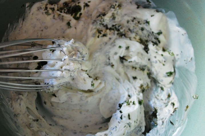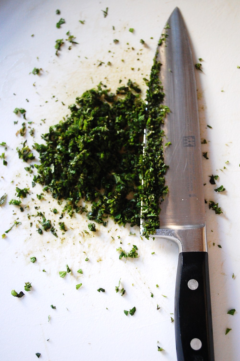 3. Meanwhile, rinse, dry and tear the leaves off the mint sprigs. Finely mince the mint.