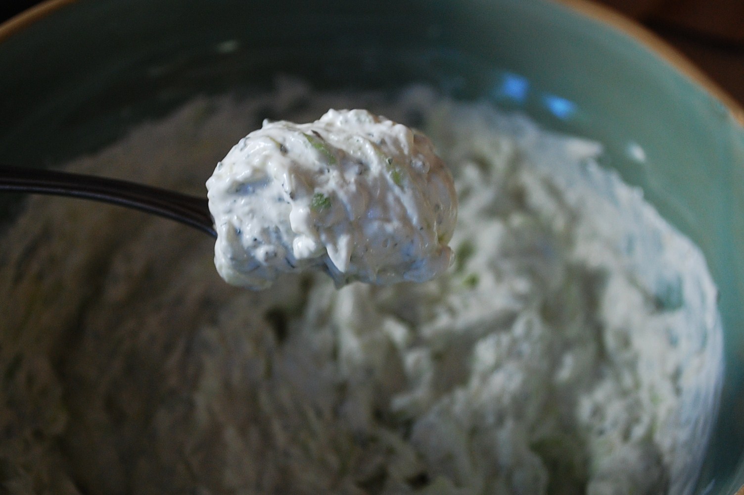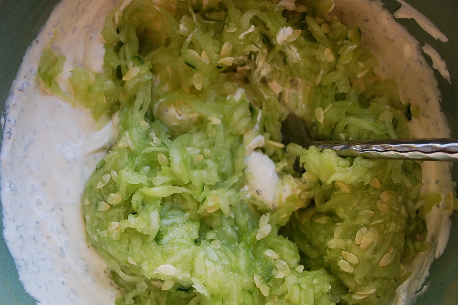 6. Mix the cucumbers together with the sour cream mixture and check for additionally needed salt, starting with 1/4 tsp. and increasing until the flavor is full and interesting but not salty.
