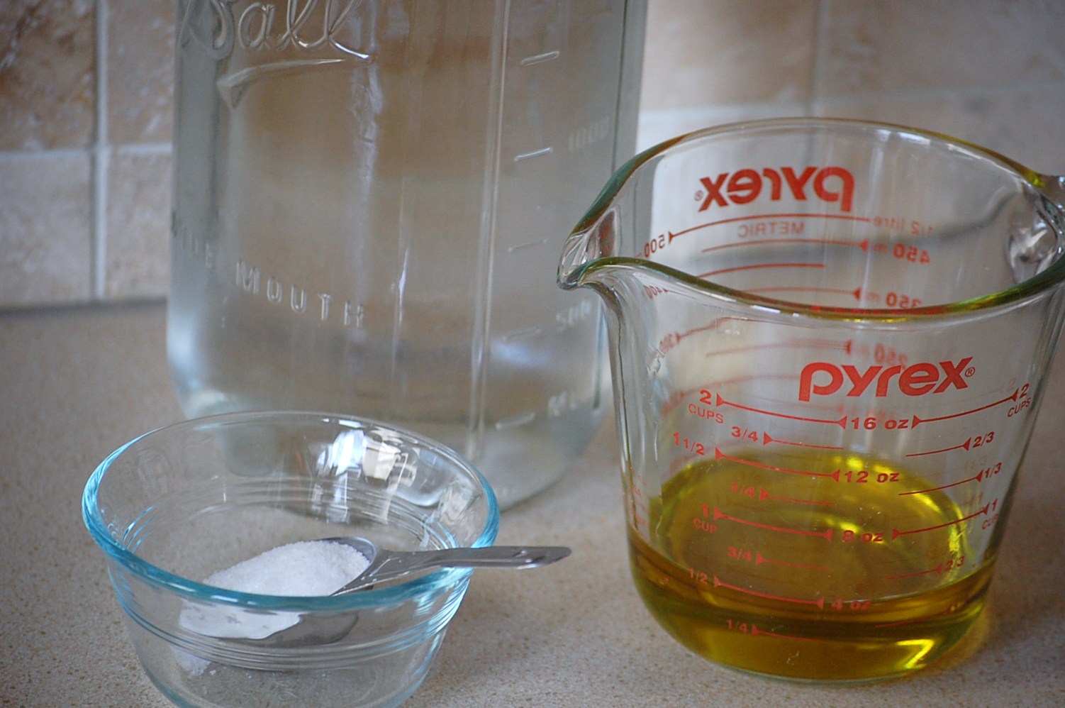 1. Juice lemon. Peel and mince garlic cloves or leave whole. Pour water, lemon juice, olive oil, garlic, and salt into a pot on high heat.