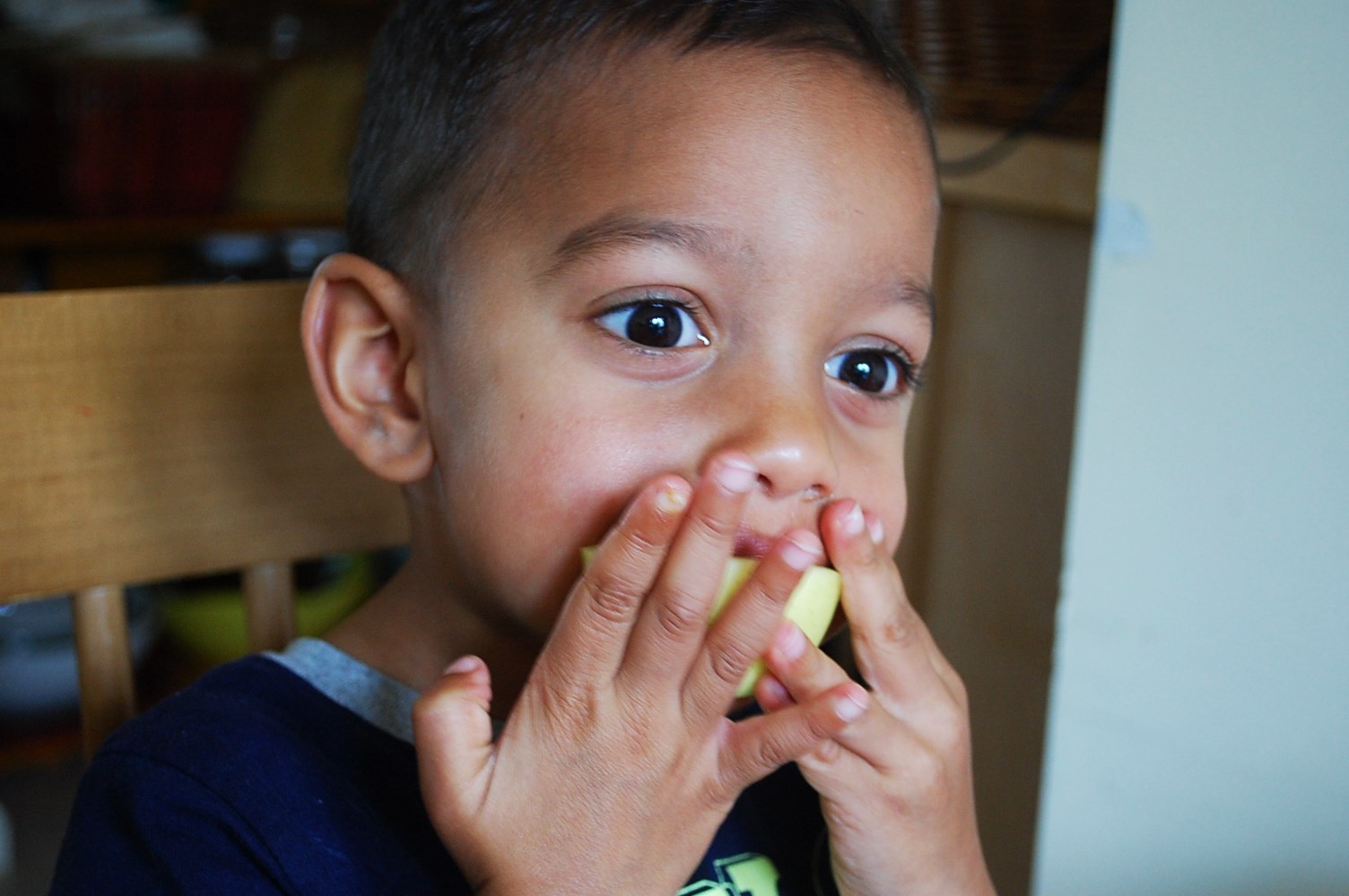 On the drive home, I begin to tremble with hunger, the kind of hunger I’d had in the first trimester, surprising me as I’d eaten a brimming bowl of sausage vegetable soup and two squares of dark chocolate for lunch. As soon as we were home, I begin to think about supper. I decide that I’ll make a fresh veggie tray with homemade ranch dip, fry up some organic chicken dumplings I’d randomly picked up the in the prepared foods section of the grocery store, and wash some red grapes. I realize I have to please three toddlers with this meal as 3-year-old Barak; a neighbor’s son will be staying with us overnight.