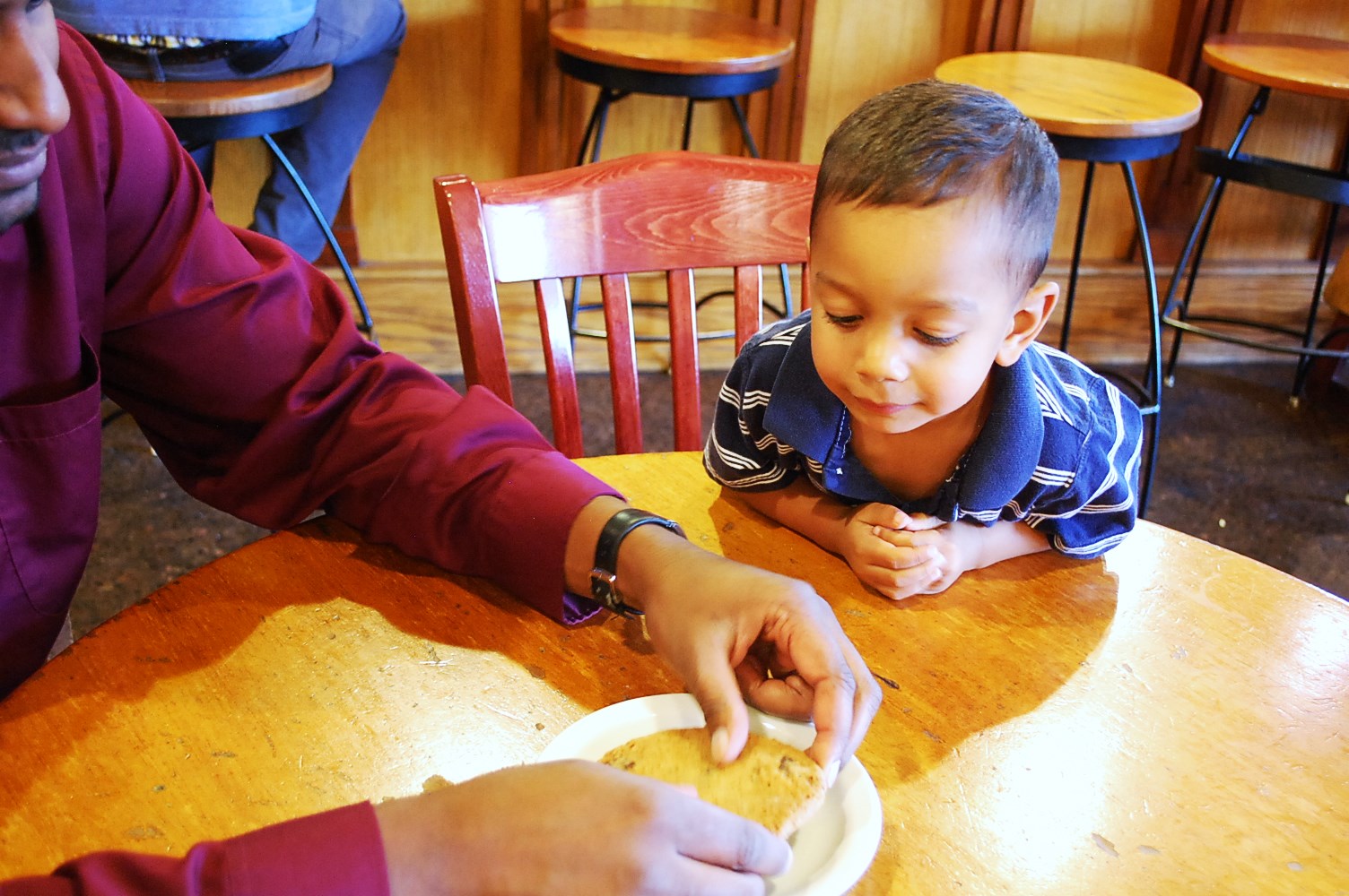 I get up and slice a ginger gold apple for a snack/meal for Elliot; he crunches into it and is delighted with my suggestion to dip it in peanut butter. When I can’t find any, I pull out a jar of Biscoff spread, one of his favorite things in the world and he consumes several heaping spoonfuls of the “cookie-on-a-spoon”.  I also feed him butter-slathered curly pasta and he eats half the plate before pushing back his chair.  As Eden continues with a cutting and pasting project, Elliot washes his face and hands and is diapered for naptime. He only begins to weep a bit as I tuck him in, declaring that he didn’t get to finish his schoolwork and asking about Daddy.DSC_0896